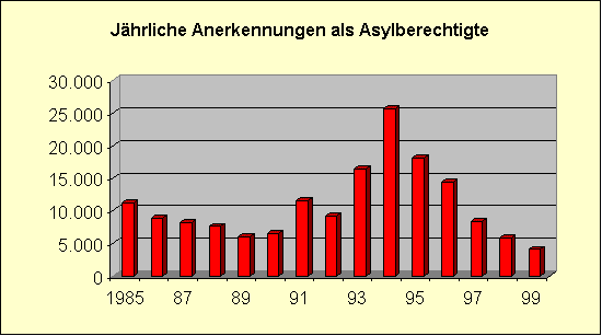 insgesamt | anerkannt | Absch.schutz | Absch.hind. | abgelehnt | eingestellt | |||||||||||||||