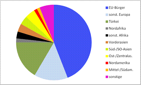 Quelle: BAMF, Bevölkerung und Erwerbstätigkeit, Ausländische Bevölkerung, 2015, S. 30-41. | ||||||||