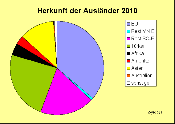 Herkunft der Ausländer 2010 nach Staatsangehörigkeitsgruppen |
