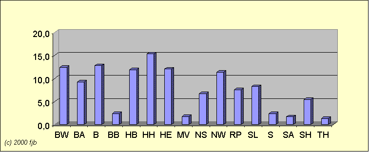 Nordrhein-Westfalen | NW | 17.999.800 | 2.044.625 | 11,4 | |||